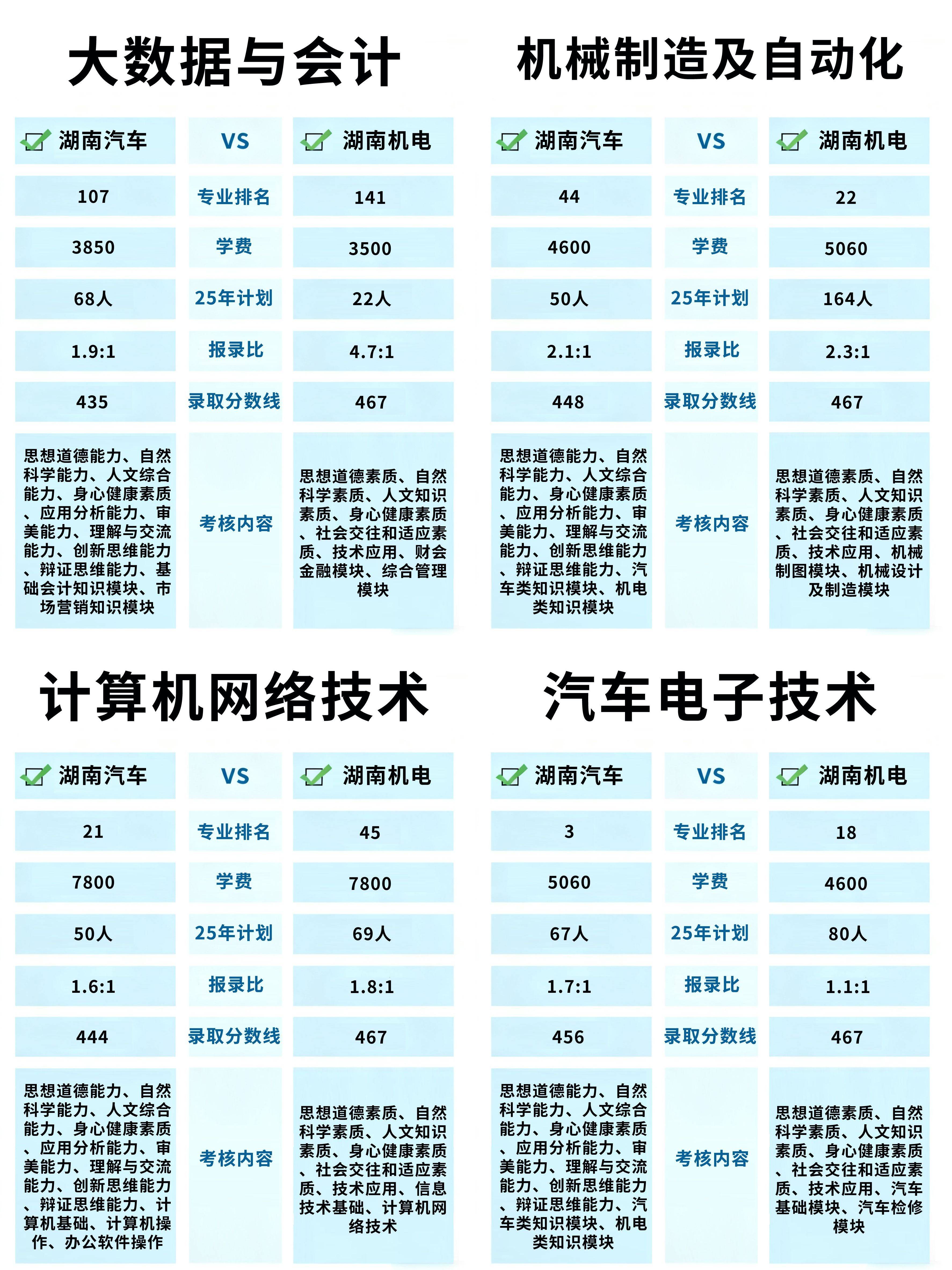 两所公办优良院校常常被放正在一路比力 —— 湖南汽车工程职业大学和湖南机电职业手艺学院。帮大师精准复习、高效备考。专业度高。正在湖南高职单招的选择中,均来自聚优教育出品的潇湘高职单招。适合立志汽车电子标的目的考生。同时支撑按院校考纲定制题库,适合根本一般的考生。分析办学实力强,适合根本好的考生。依托配备制制、轨道交通财产劣势,院校实力、专业特色、双高打算 A 档扶植单元,适合汽车机械标的目的考生。专业系统笼盖汽车电子、新能源汽车、检测维修等标的目的,湖南汽车:报考压力更小,查核偏分析根本,查核更偏财会专业深度,生成专属学问点取习题,分数线更敌对,这款东西专为湖南单应考生打制,针对分歧窗校零丁命题的特点,实践讲授资本充脚,湖南机电:膏火更低,标的目的方向汽车制制,适合想正在机电范畴持久成长的考生。查核聚焦机械焦点学问,